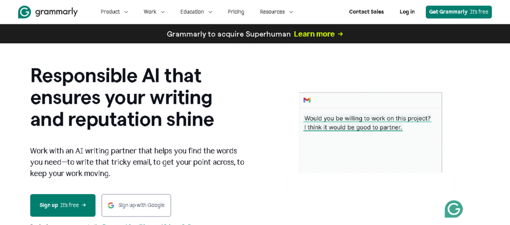 Grammarly has evolved beyond simple grammar checking to become a comprehensive AI writing assistant with significant conversion copywriting capabilities. The platform’s generative AI features help users overcome writer’s block while maintaining focus on conversion objectives. Grammarly can generate complete drafts, rewrite content for different audiences, and optimize messaging for specific goals—all while ensuring grammatical accuracy and readability.