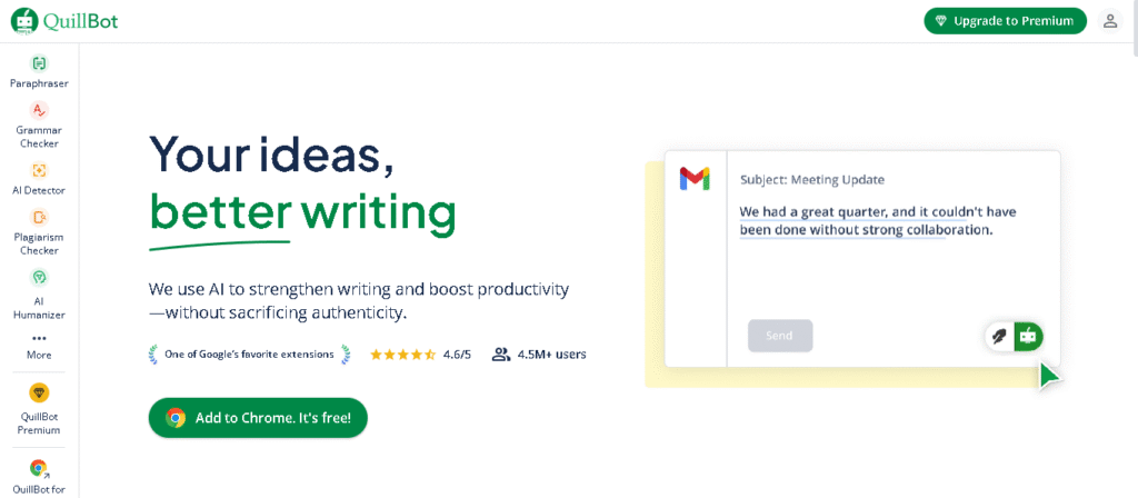 QuillBot has established itself as the leading paraphrasing tool, offering advanced rewriting capabilities and comprehensive writing assistance. The platform excels at helping users refine and improve existing content.