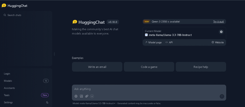 HuggingChat provides access to multiple open-source AI models in a single interface, offering unprecedented flexibility.